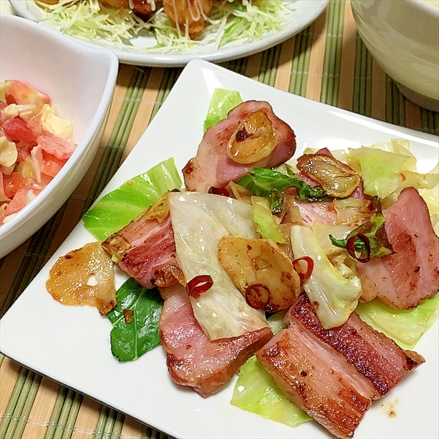がっつり 厚切りベーコンとキャベツのにんにくパンチ レシピ 作り方 By Johnny Bean 楽天レシピ
